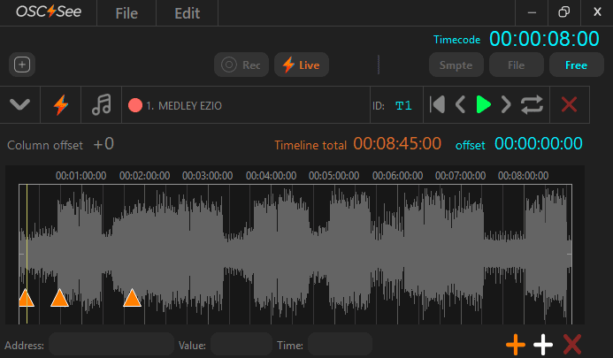Each track can be SMPTE / Audio File / Free, and you can switch anytime.
